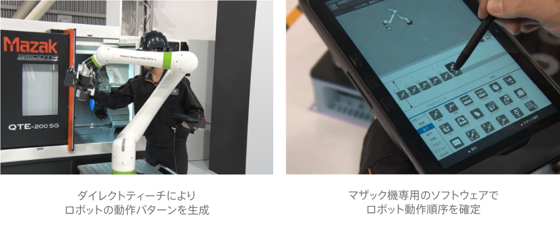 協働ロボットのダイレクトティーチ機能とマザック機の専用指令アイコンにより