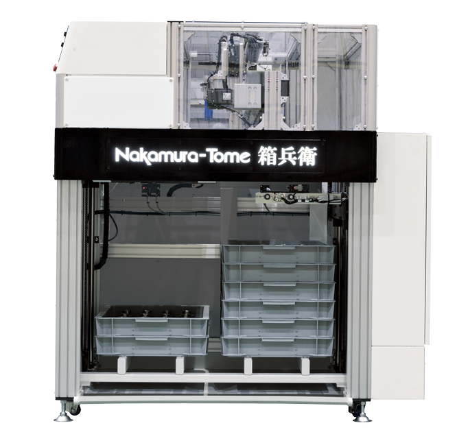 素材の搬入→機械加工→完成品の搬出→パレタイジングまで、全ての作業が1台で完結。