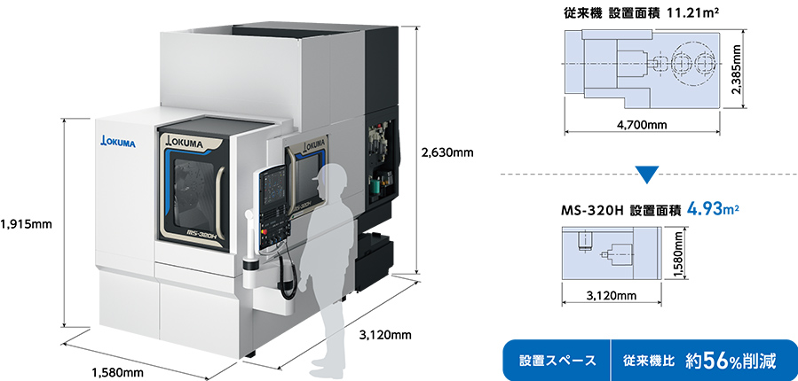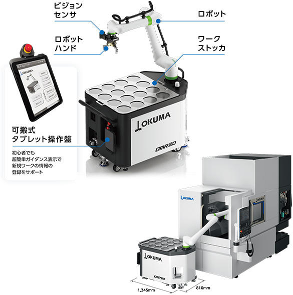 単体機の作業者エリア内で設置が可能でコンパクトな自動化を実現します。