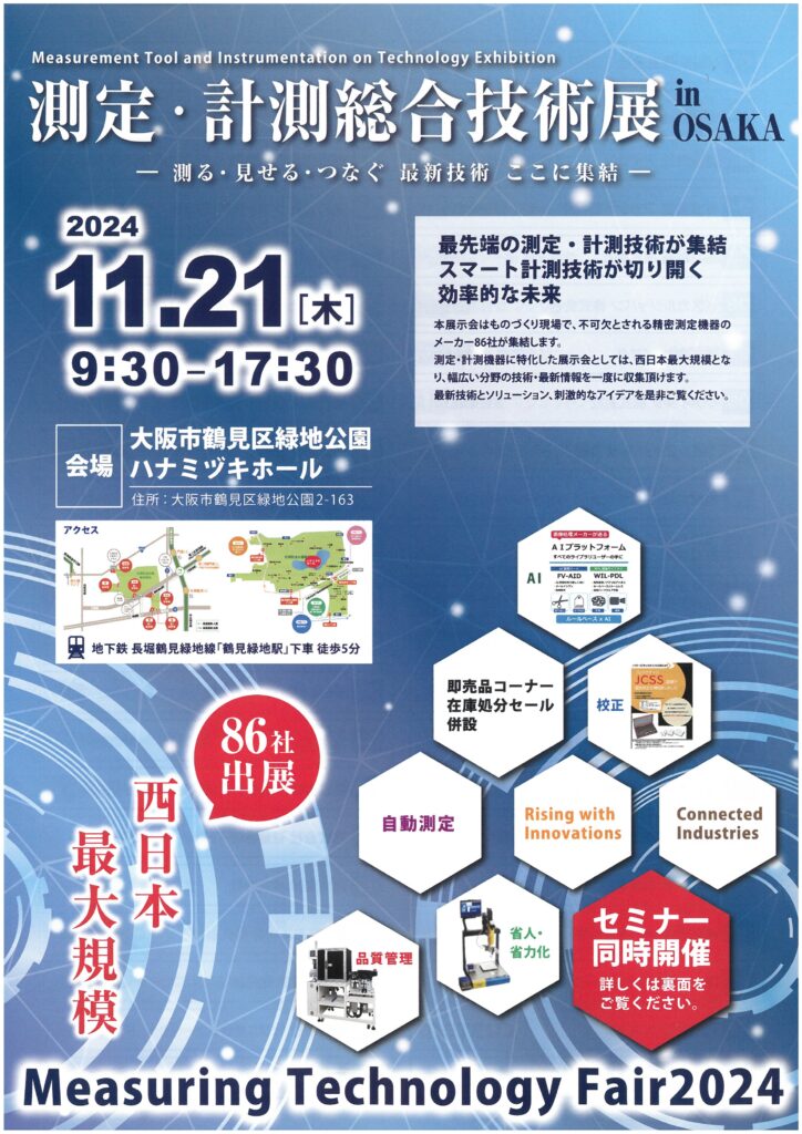 2024年11月21日(木)9:30~17:30 大阪市鶴見区緑地にて 測定、計測総合技術展in OSAKAが開催されます
