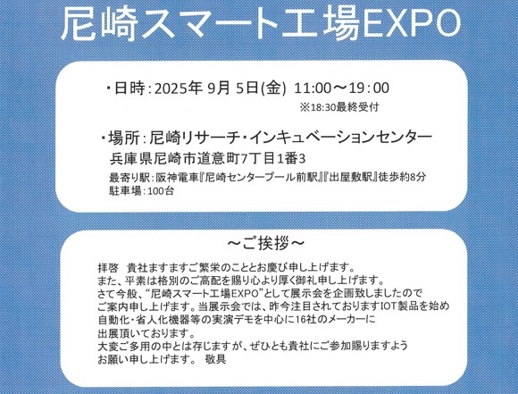 尼崎スマート工場EXPOが下記日程にて開催されます