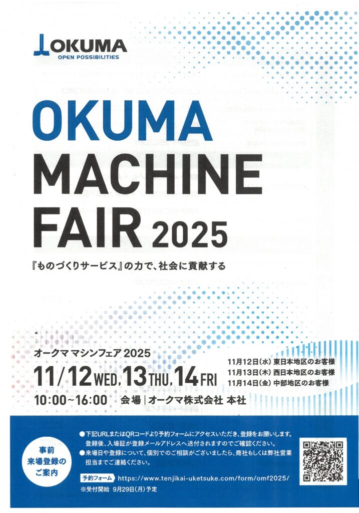 明石営業所からのお知らせです OKUMA MACHINE FAIR2025が下記日程にて開催されます