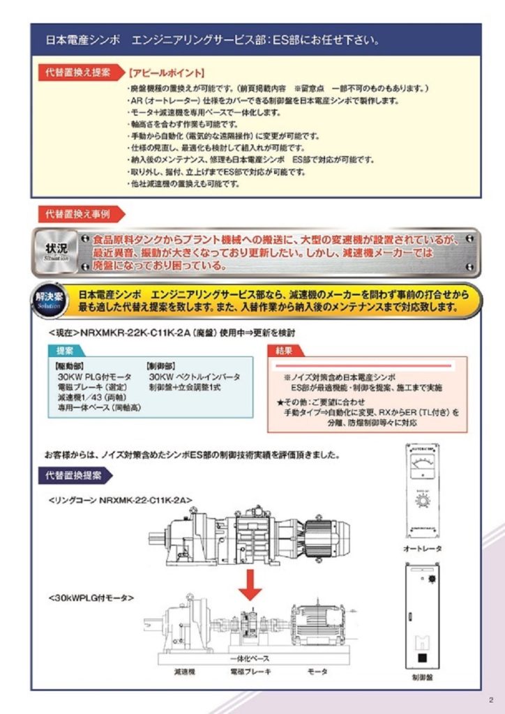 製品寿命の長い減速機・変速機は、更新するタイミングで既に製造中止になっており、