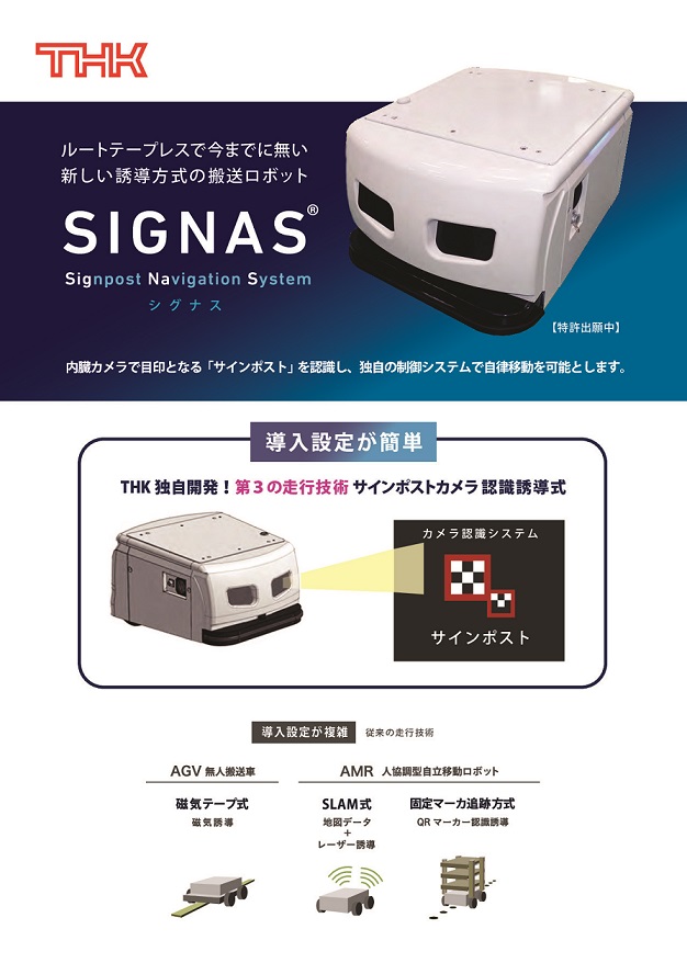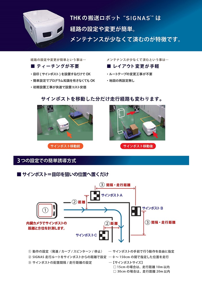THK独自の第3の走行技術サインポストカメラ認識誘導式!