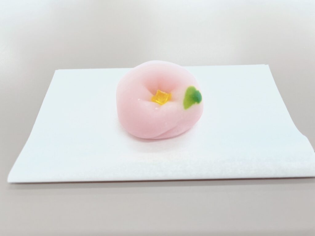 ころんとしたフォルムにきれいなピンクでとてもかわいいお菓子でした。