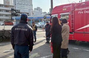 今回も尼崎東消防署から消防隊の方に講師で来ていただきました。
