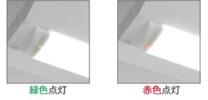 ・緑色点灯:蓄電池残量90%以上:停電時、約9~10時間の非常点灯が可能です。