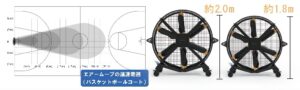 超大風量で約18m先(バスケットコートの半分ほど)まで風を届けることができます。
