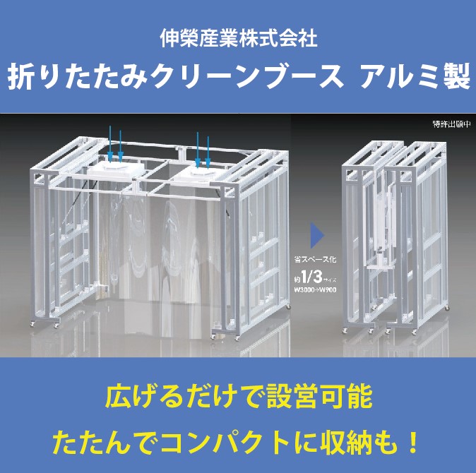 伸榮産業㈱の『折りたたみクリーンブース アルミ製』を紹介します。