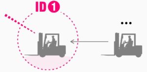 また、磁界内ではIDを検知してフォークリフトを判別するため