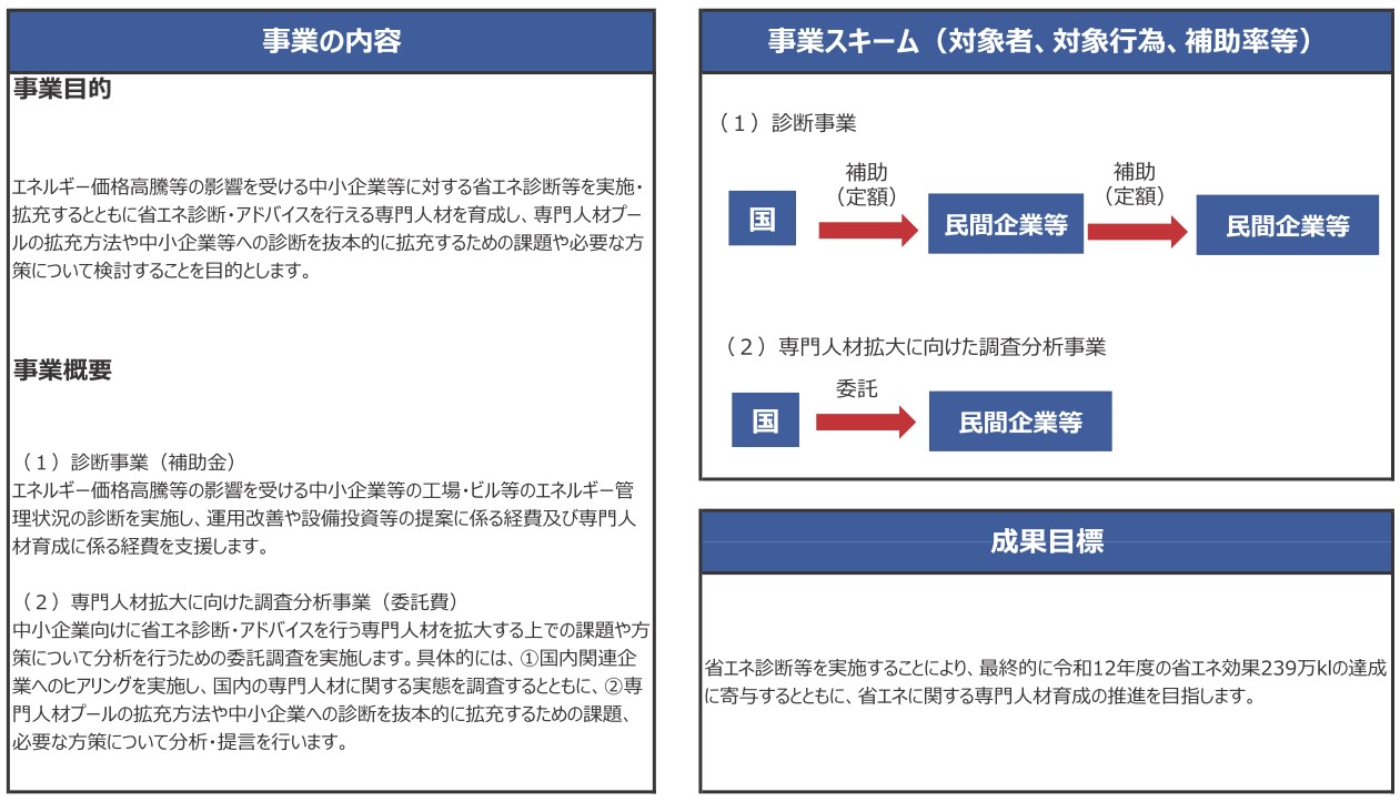 また、中小企業等に対する省エネ診断の実施・拡充も行われます。