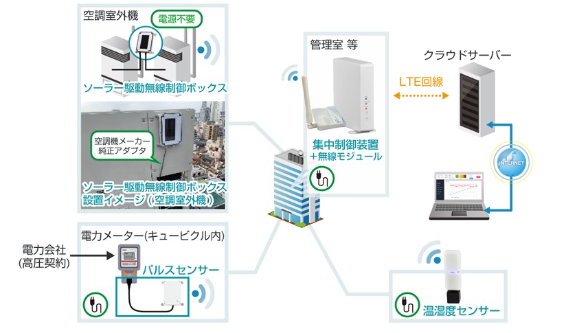 室外機に接続する機器は無線+ソーラー給電を採用。