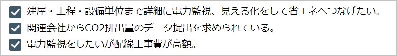 ・工場内の複数電力データを事務所で後付け電力監視