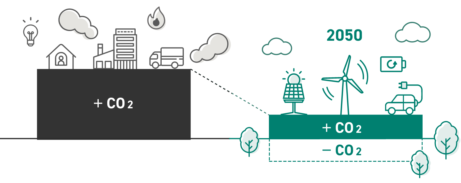 ⇒温室効果ガス(主にCO2)の排出を全体としてゼロにすること