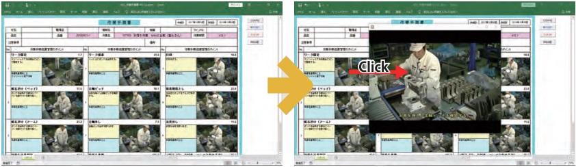 編集した動画から、標準作業組合せ票、山積み表、作業手順書(要領書)などの帳票を作成![]()