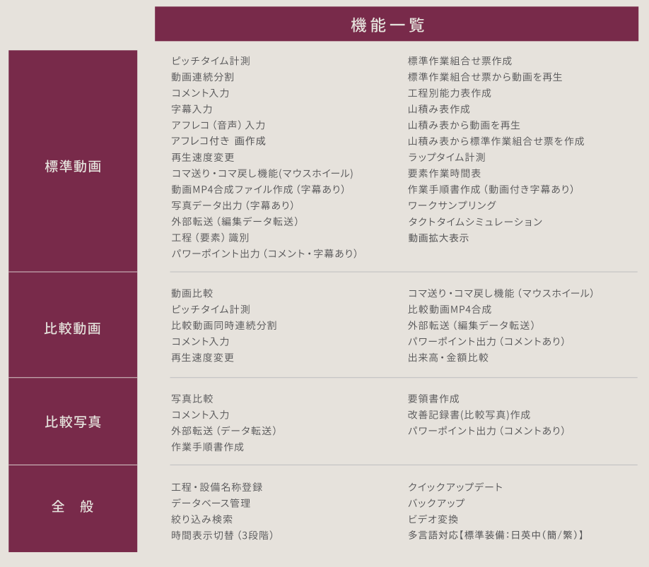 動作分析、作業改善、工程の標準化などさまざまな活用ができます![]()