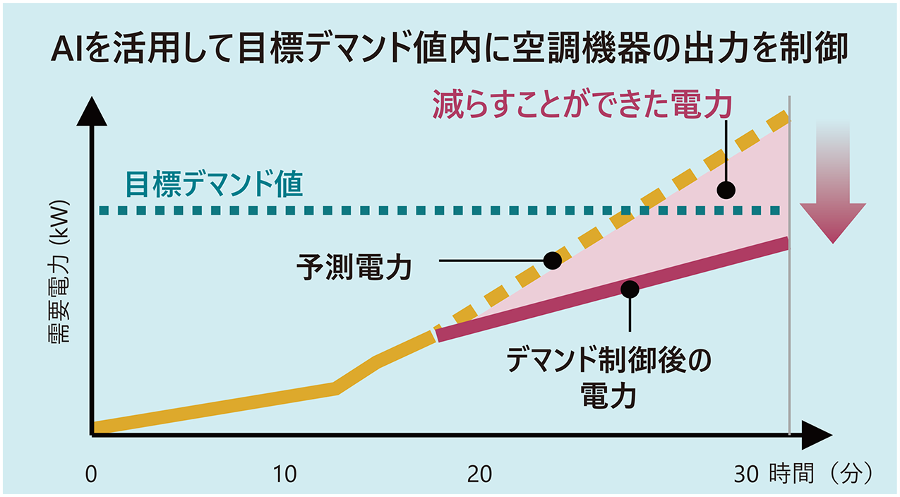 AIが常時消費電力を予測し、目標デマンド値を超えないように