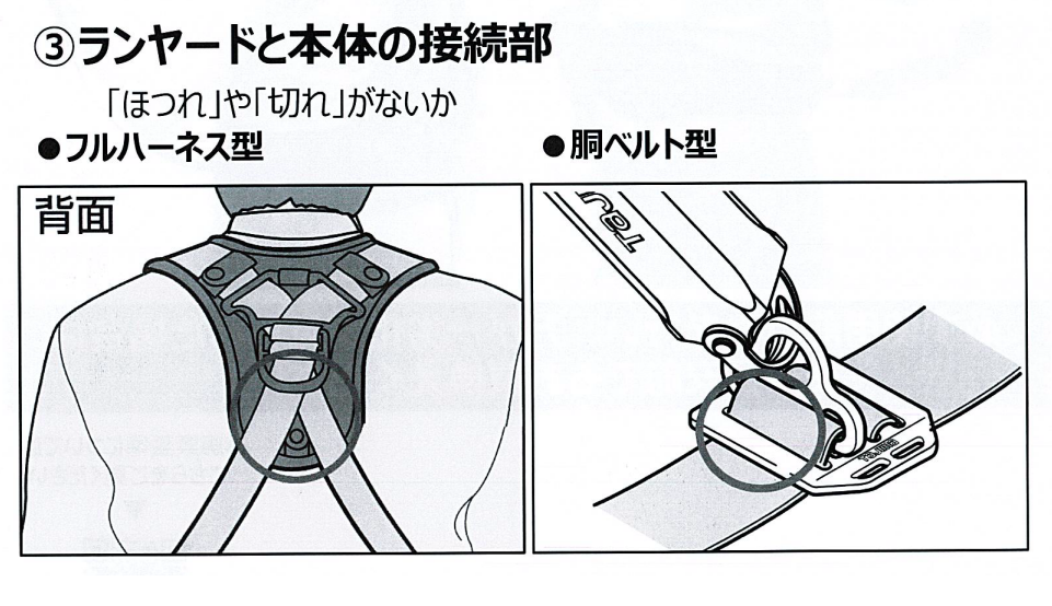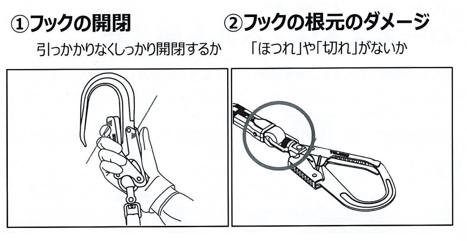墜落制止用器具は日常的に使用前点検を行いましょう。