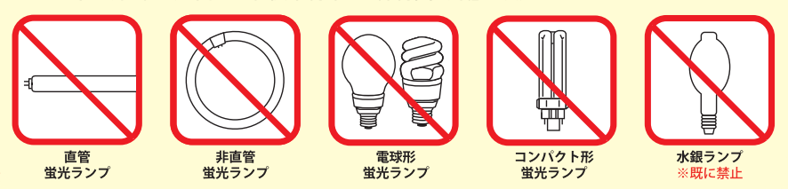 禁止となる蛍光ランプ一覧