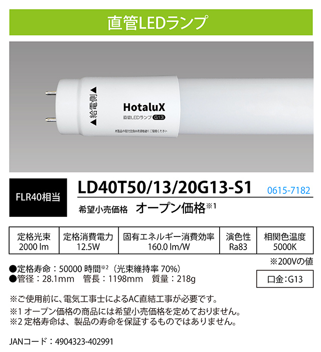 蛍光ランプと同じG13口金のため、既設の照明器具を活かして