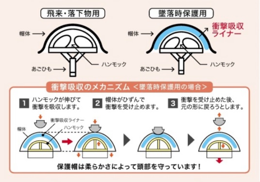 ヘルメットには「飛来・落下物用」と「墜落時保護用」の2種類があり、