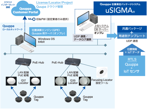 • 各ロケーターはLAN配線でPoE-Hubと接続しPCサーバー側とデータ通信が可能