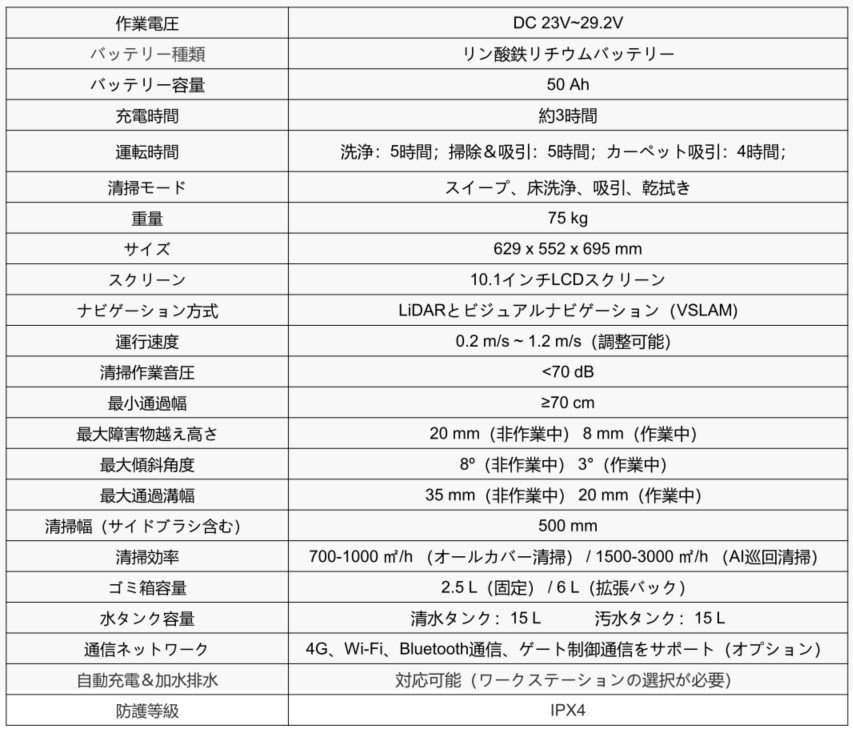 作業効率は1500~3000㎡/hに達し、広範囲を効率的に清掃できます。