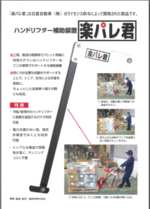 睦技研株式会社様よりハンドリフター補助装置 楽パレ君のご紹介です。