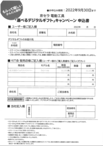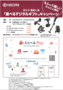 京セラより電動工具「選べるデジタルギフト」キャンペーンのご案内です。