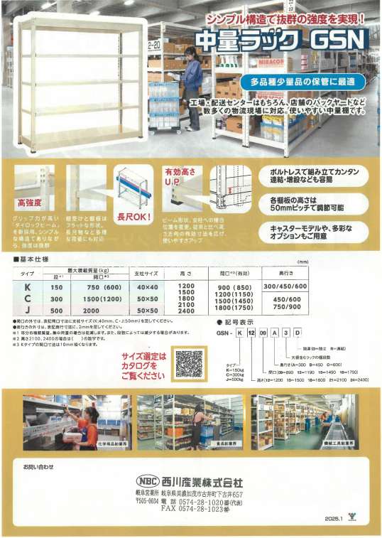 対象:中量ラック GSNシリーズ全機種