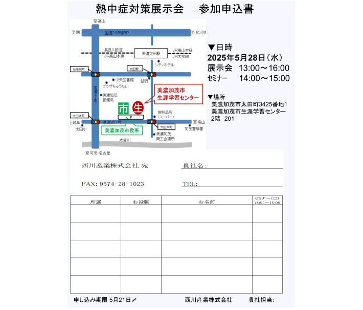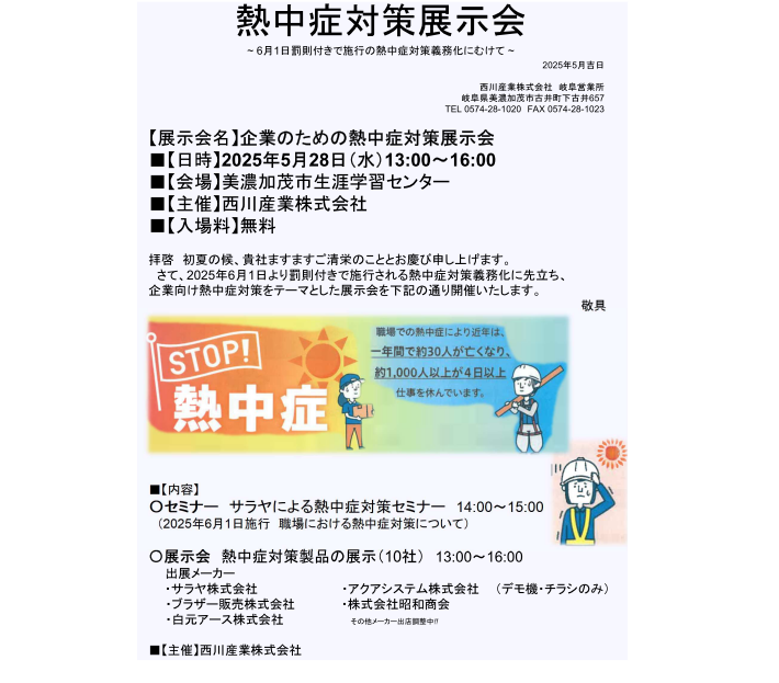 2025年6月1日より罰則付きで施行される熱中症対策義務化に先立ち、 企業向け熱中症対策をテーマとした展示会を下記の通り開催いたします。