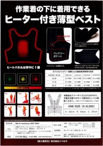 冬場の体調管理にも、ぜひ電熱ベストをご活用下さい!