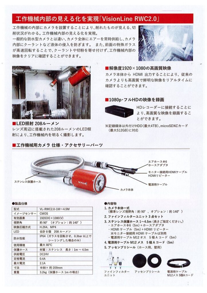 カメラレンズに高速回転する特殊ガラスがついているので、クーラントや切粉の侵入を防ぐことができます。