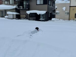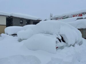 完全に雪に埋まって車ってことがわからないくらいです。笑