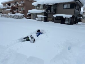 作業後に雪合戦でもするかと思いきや、なぜか新雪に思いっきりダイブしてる人が。
