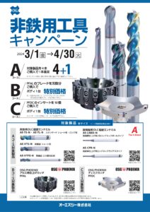3月1日より4月30日まで、OSG非鉄用工具キャンペーンが始まります。
