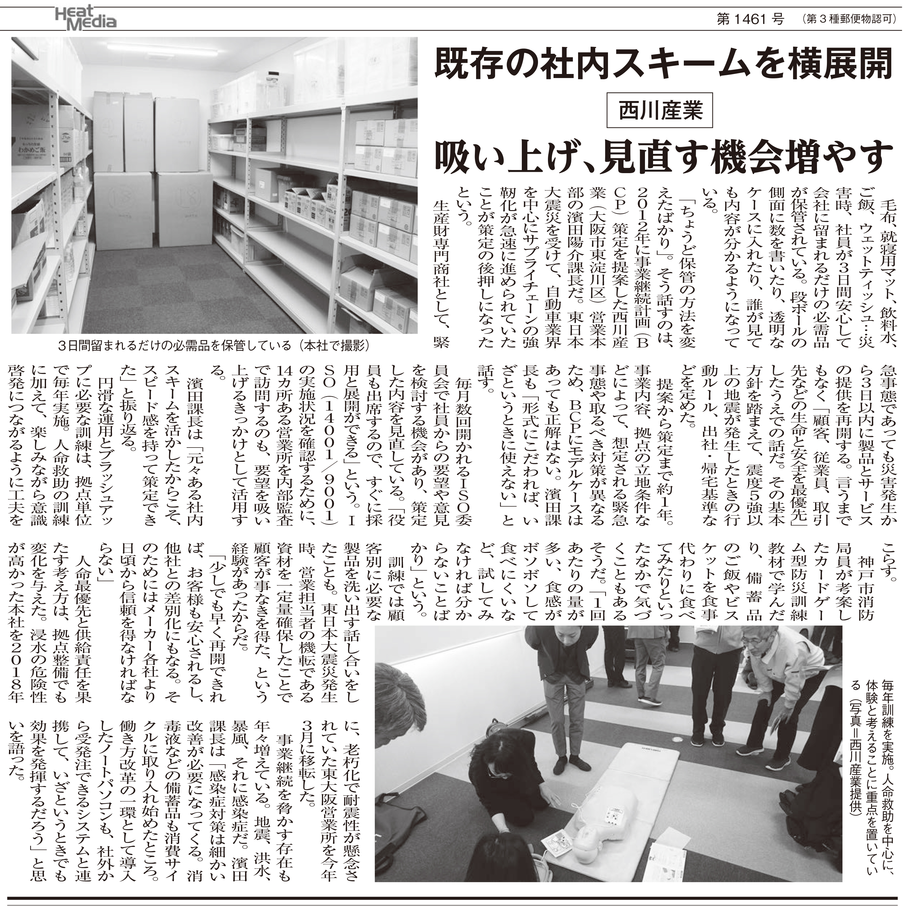備蓄品倉庫やBCP訓練の様子が掲載されましたので