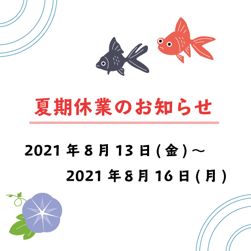 休業日:2021年8月13日(金)~2021年8月16日(月)