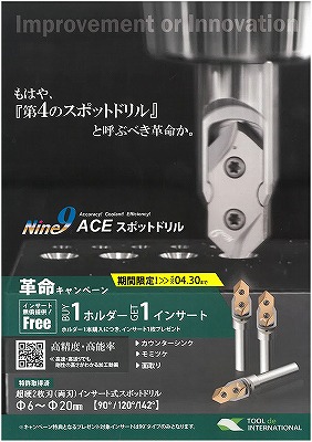 Nine9 ACE スポットドリル、NCスポットドリル、チャンファーミル、