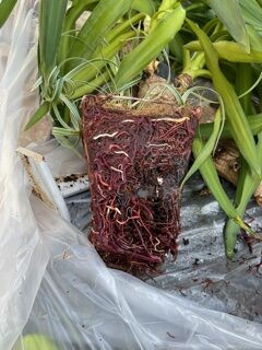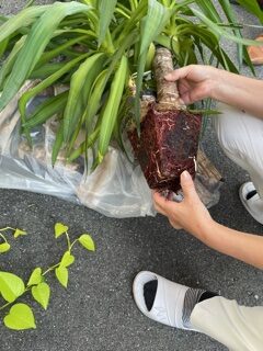 エンジニアリンググループの池田さんにも手伝って頂き、鉢から植物を取り出し(池田さんありがとうございます