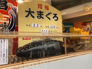 まぐろは直接お金を貼り付けられないように、大事にケースの中で横たわっていました。