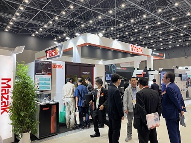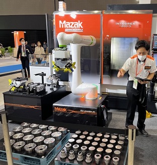 ヤマザキマザックのブースでは多数の工作機械機械に加えて自動化システムとのコラボ展示も行われ