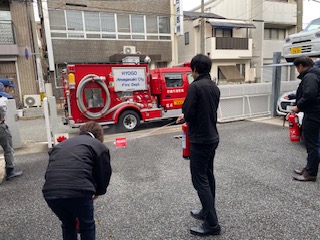 尼崎北消防署から講師に来て頂き、救命講習・消火訓練を実施しました。