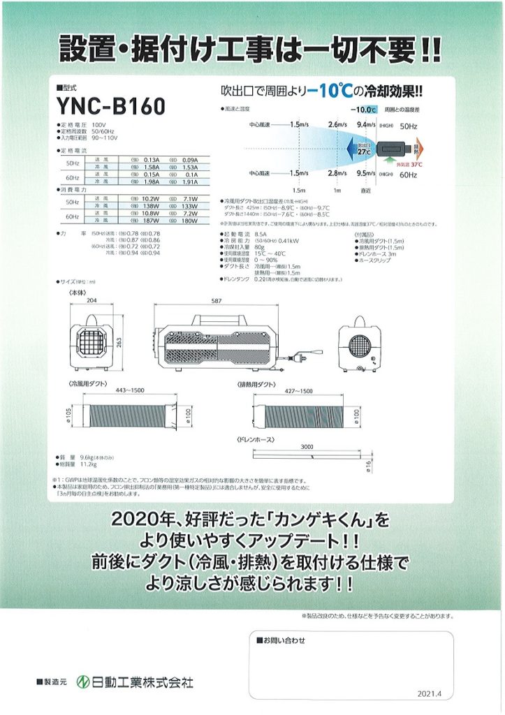 日動工業 ポータブルスポットクーラー 『カンゲキくん2』YNC-B160