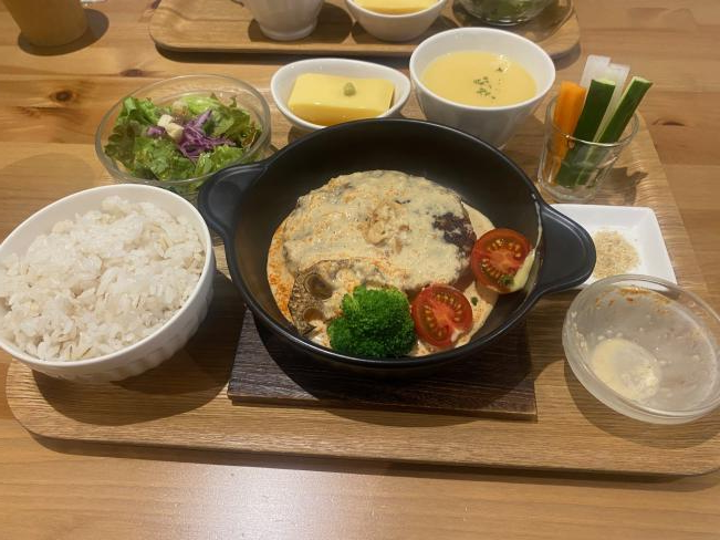 他に比べて少々割高ですがお米も麦飯を使っていてハンバーグとの相性◎です。