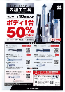 「OSGインデキサブルツール 穴加工工具 キャンペーン」が残り約1ヶ月となりました。