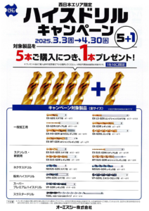 3/3より OSG タップ・ハイスドリル・超硬ドリルの キャンペーン始まりました!