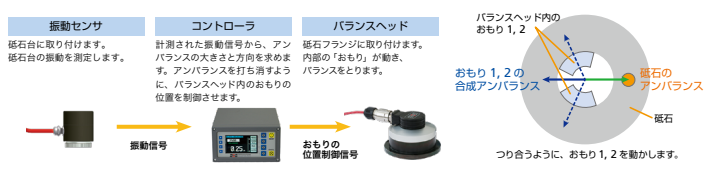自動砥石バランサーシステムと加工監視AE センサーシステムは