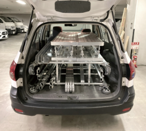 車載収納、エレベーターに積込んで運搬可能です。