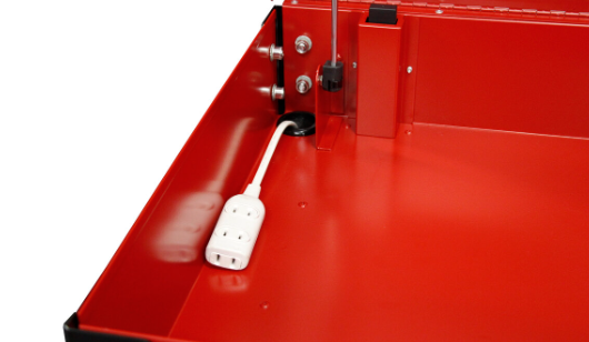 天面蓋クローズ時は引出しがロックする機構を採用し、移動時の引出しの飛び出しを防止します。